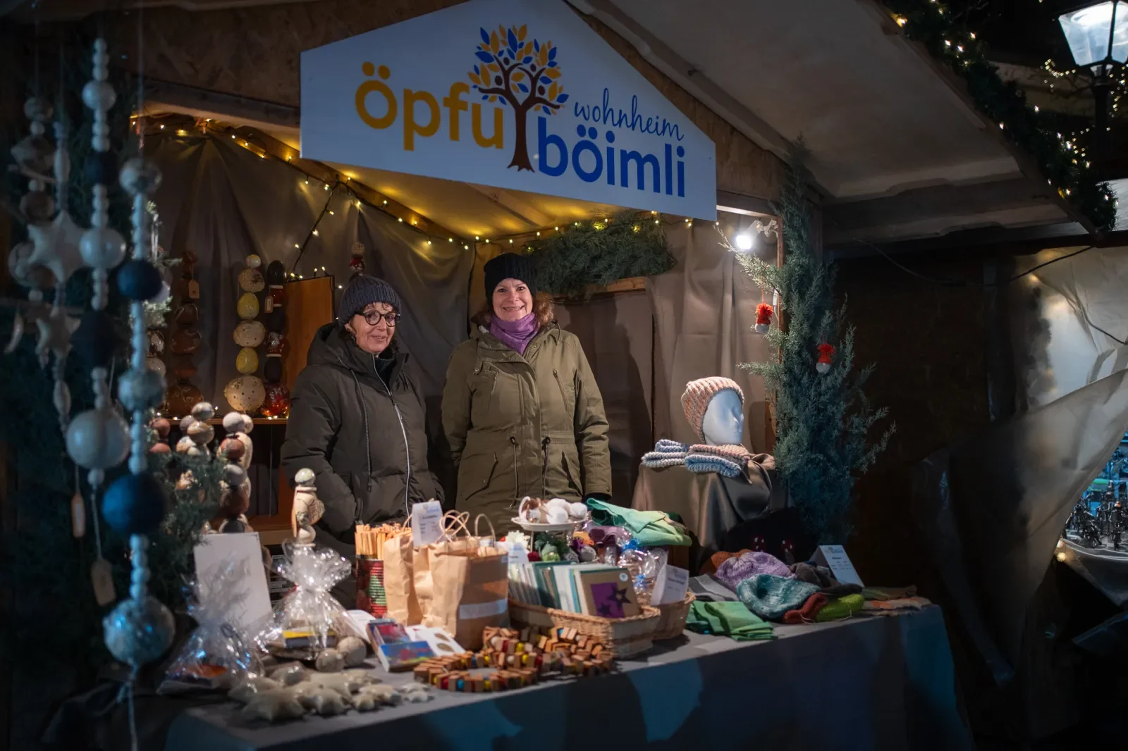 Unsere Mitarbeitenden und unsere Bewohner:innen haben sich ins Zeug gelegt, um das Öpfuböimli am Wiehnachtsmärit zu repräsentieren. Ein herzliches Dankeschön an die zahlreichen Besucher:innen, die an unserem Stand Halt gemacht haben. Die schönen Begegnungen haben uns grosse Freude bereitet und uns einen wunderbaren Start in die Adventszeit geschenkt.