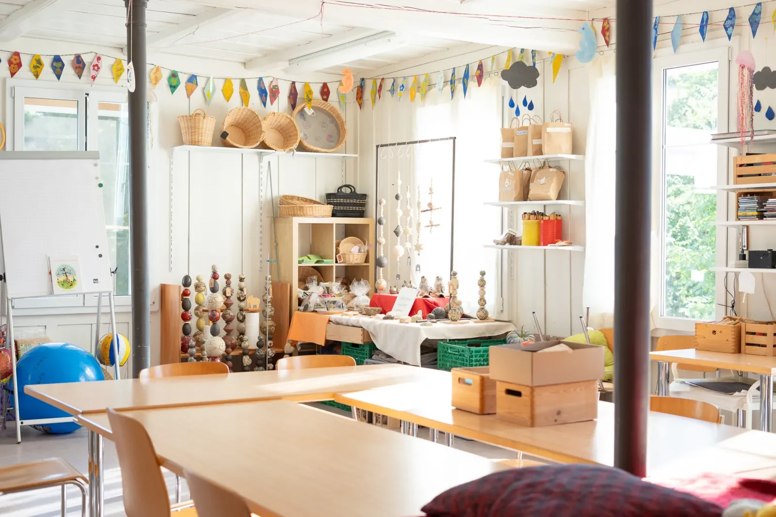Auch die Tagesstruktur findet grundsätzlich im Nyffel statt. Zwei helle Atelierräume, das Wohnzimmer sowie der grosszügige Garten werden für die individuellen Bedürfnisse kreativ genutzt.